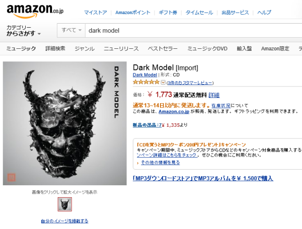 Note: 6/14現在、Amazon.co.jpとCD BabyではDark Model CD が再入荷され、販売されています。是非ご利用下さい。
